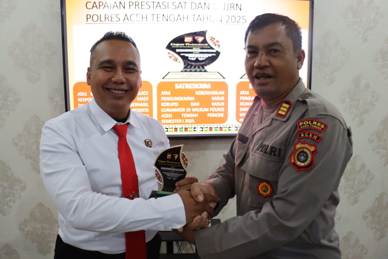 Penghargaan itu diserahkan dalam kegiatan Gelar Operasional di Mapolres Aceh Tengah, Senin (11/8/2025).