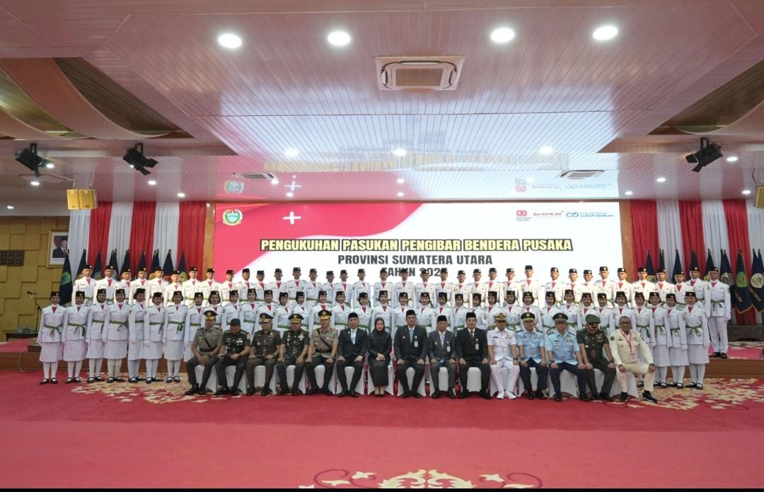 AtensiRakyat.com : Medan – Gubernur Sumatera Utara (Sumut), Bobby Nasution, mengukuhkan 71 anggota Pasukan Pengibar Bendera Pusaka (Paskibraka) Sumut, yang akan bertugas mengibarkan bendera pusaka pada 17 Agustus 2025 di Lapangan Astaka. Pengukuhan tersebut berlangsung di Aula Tengku Rizal Nurdin, Jalan Sudirman 41 Medan, Jumat (15/8/2025).