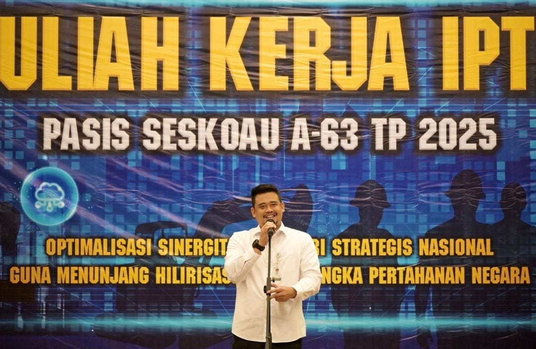 “Kita sedang mempersiapkan Indonesia Emas 2045, dan hilirisasi industri menjadi hal yang sangat penting, beruntung kami dipilih untuk Kuliah Kerja Praktek Sesko AU, kami harap Sumut berperan besar di industri nasional, terutama di bidang pertahanan,” kata Bobby Nasution, di acara pembukaan Kuliah Kerja Iptek Pasis Sesko AU A-63 di Hotel Santika Premiere Dyandra Hotel & Convention, Jalan Kapten Maulana Lubis, Medan, Rabu (27/8/2025).