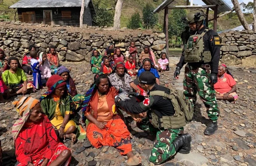 AtensiRakyat.com : Papua Tengah – Pos Ilu Satgas Yonif 112/DJ melaksanakan pengobatan gratis dan membagikan pakaian kepada masyarakat di Gereja Wurak Dolinggame Distrik Ilu, Kabupaten Puncak Jaya, Provinsi Papua Tengah, Jumat (12/09/2025).