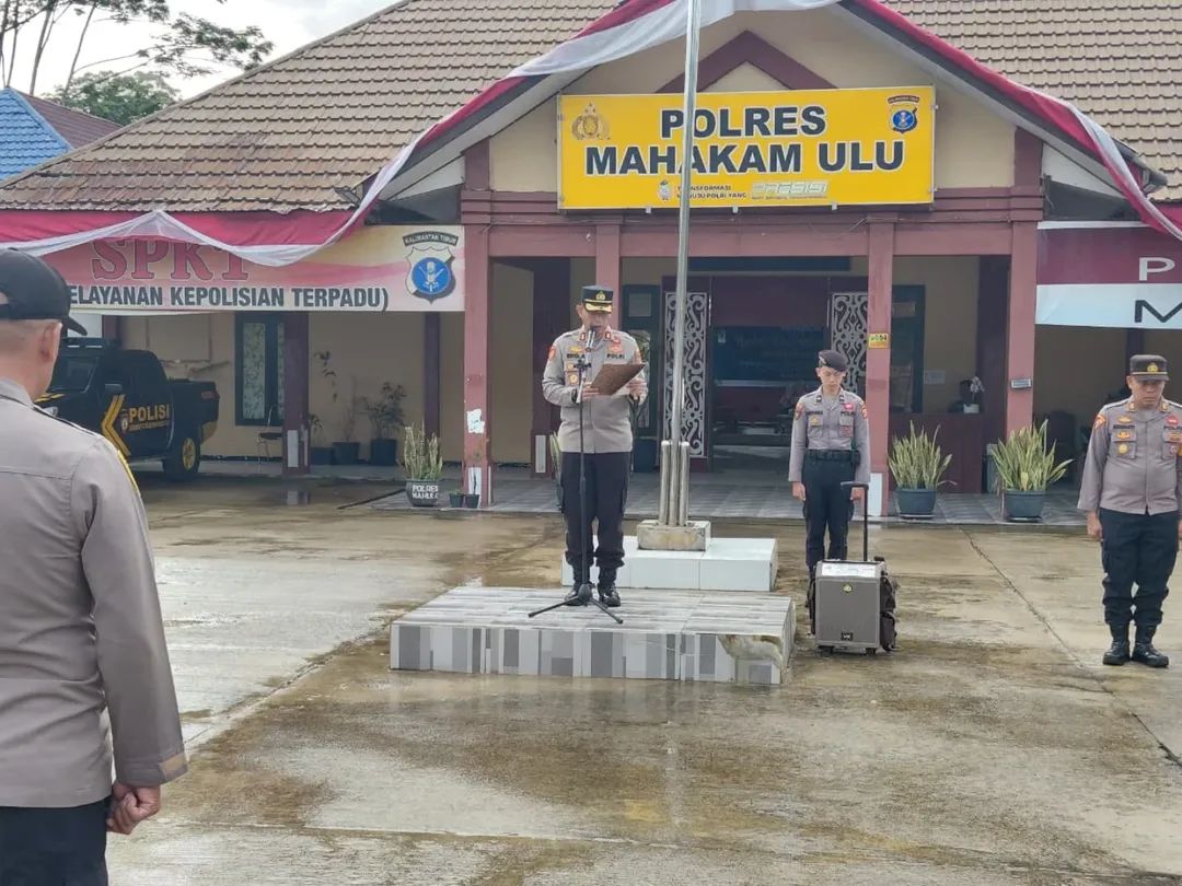 AtensiRakyat.com : Mahulu – Kapolres Mahakam Ulu, AKBP Eko Alamsyah A.Md., S.H., M.H., memimpin langsung apel pagi yang berlangsung di halaman Mako Polres Mahakam Ulu, Senin (15/9/2025).