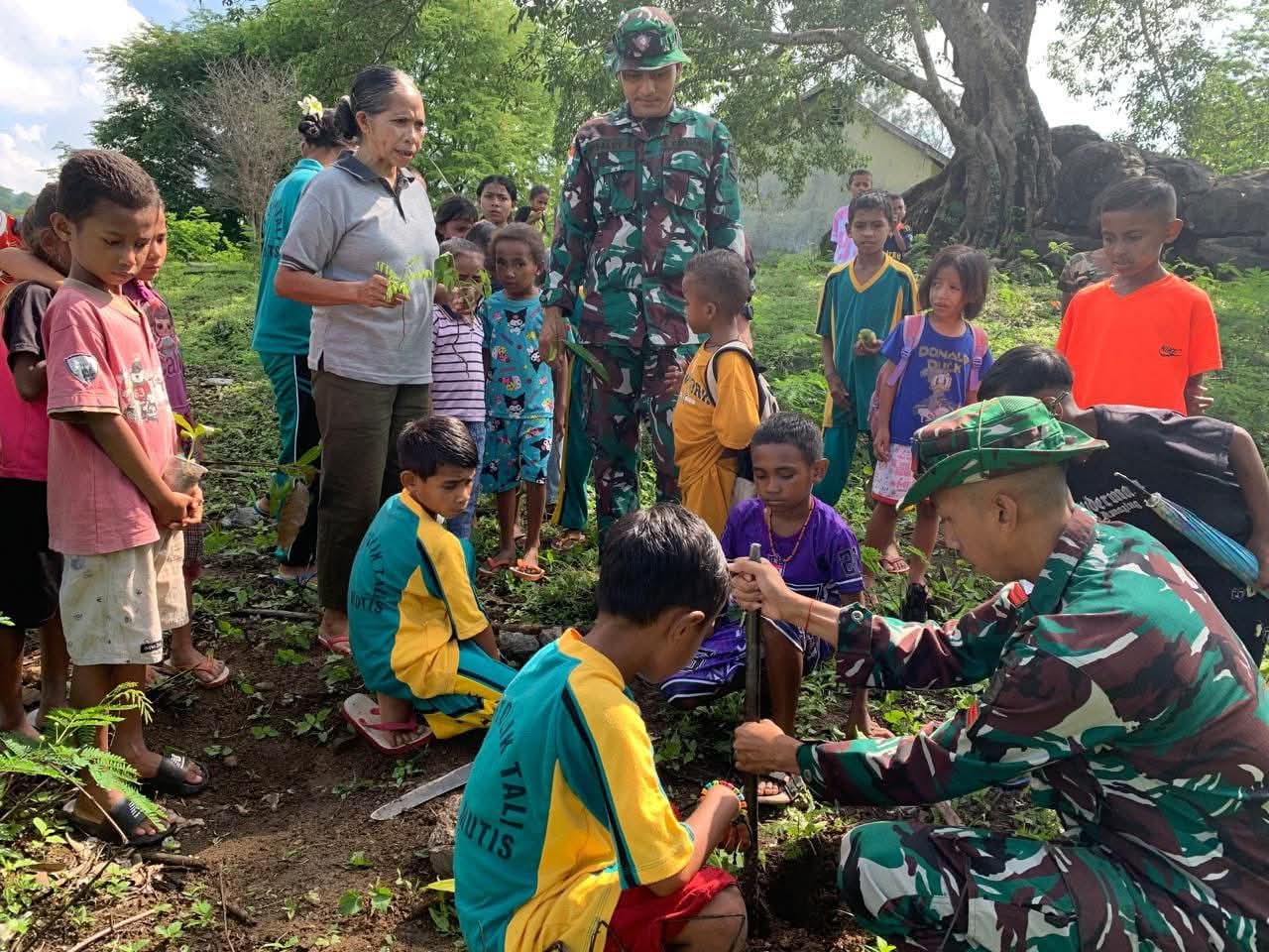 AtensiRakyat.com : Kabupaten TTU – Sebagai wujud kepedulian terhadap kelestarian lingkungan, Satgas Pamtas RI–RDTL Sektor Barat dari Yonarhanud 2 Kostrad Pos Naekake melaksanakan edukasi penanaman pohon cemara di lingkungan SDK Tali, Desa Naekake A, Kecamatan Mutis, Kabupaten Timor Tengah Utara (TTU), Provinsi Nusa Tenggara Timur, Jumat (20/2/2026).