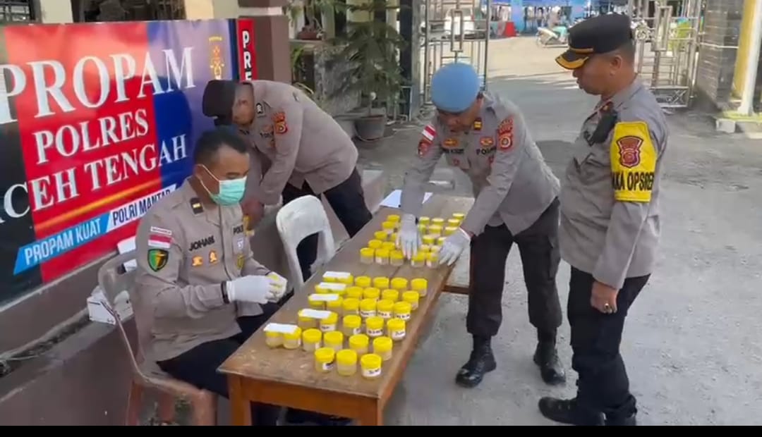 AtensiRakyat.com : Aceh Tengah – Komitmen menjaga integritas dan profesionalisme terus ditegaskan oleh Polres Aceh Tengah. Melalui Seksi Profesi dan Pengamanan (Sie Propam), Polres Aceh Tengah menggelar tes urine mendadak terhadap personel di Mapolres setempat, Senin (23/2/2026).