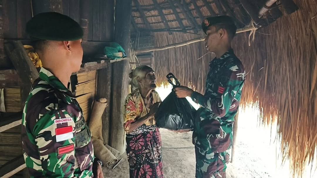 AtensiRakyat.com : NTT – Personel Pos Fatubesi Atas Satgas Pamtas RI–RDTL Sektor Timur dari Yonarmed 12 Kostrad melaksanakan kegiatan pembagian sembako kepada masyarakat yang membutuhkan di Desa Takirin, Kecamatan Tasifeto Timur, Kabupaten Belu, Nusa Tenggara Timur (NTT). Bantuan yang diberikan berupa beras, telur dan mie instan sebagai bentuk kepedulian terhadap kondisi masyarakat di wilayah perbatasan, Senin (23/02/2026).