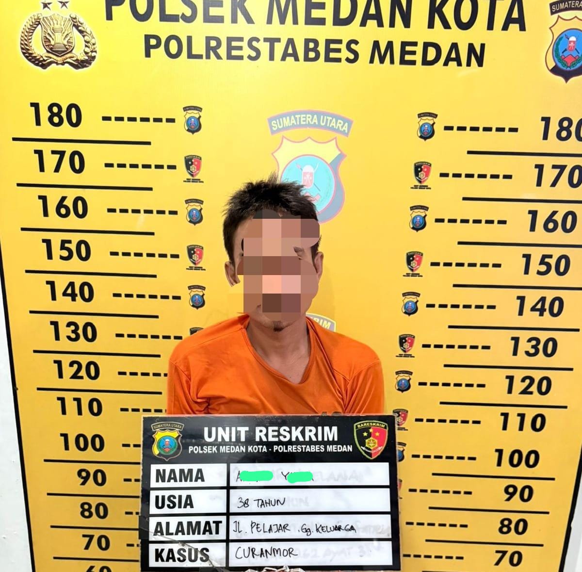 AtensiRakyat.com : Medan – Setelah menghabiskan 7 bulan pelarian, pelaku pencurian sepeda motor berinisial AY alias Ucok (38), warga Jalan Pelajar Gg. Keluarga, Kelurahan Teladan Timur, Kecamatan Medan Kota, akhirnya ditangkap personel Unit Reskrim Polsek Medan Kota, pada Minggu (26/4/2026) sekira pukul 04.00 WIB.